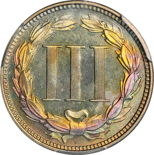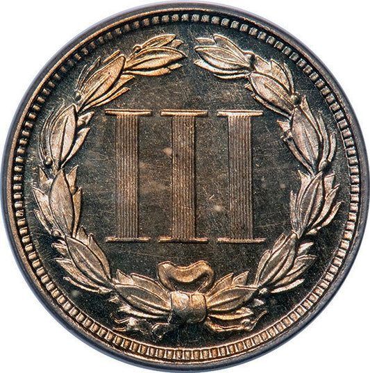 (3765) 1869 3CN PCGS PR65DCAM CAC